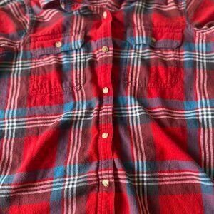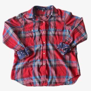 Chaps Denim Plaid Flannel Button Up Shirt Red/Blue/White Size M
