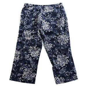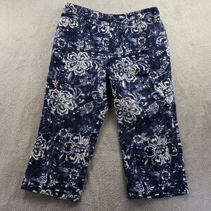 Chaps Denim Womens Capri Jeans Size 10 Floral Batik Indigo Blue Boho Chic Casual