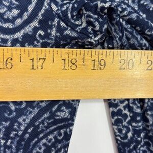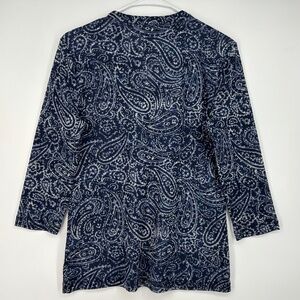 Chaps Denim Womens Large Pullover Mesh Top Blue Paisley Fitted Ruffles 3/4 Slv