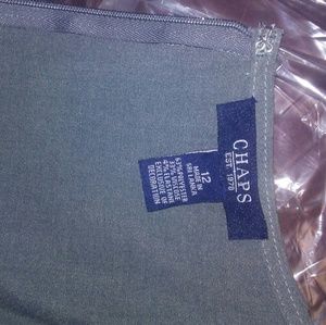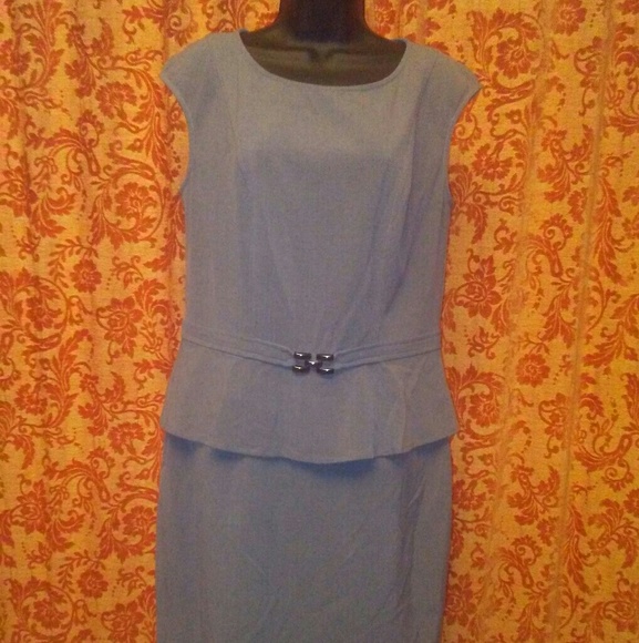 Chaps Grey dress with peplum top. Lightly used for a tv show based in Seattle. Zipper works great. No physical stress on garment. Great for the Office or at a Private practice. All items hung in smokefree environment.