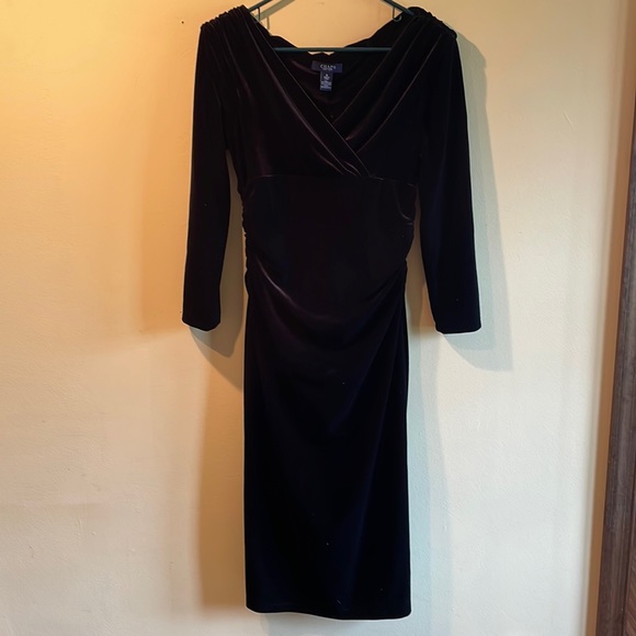 Chaps dress • Black • Size: 4 • 3/4 sleeves • Velvet-like feel • Shel: 90% polyester, 10% elastane; Lining: 100% polyester