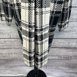 Chaps Duster Long Cardigan Sweater Plus size 2X Black Ivory Plaid Stretch Preppy