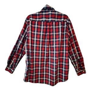 Chaps Easy Care Men's Red Navy Plaid Long Sleeve Button-up Shirt Size L Crest