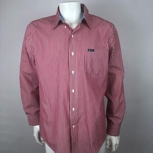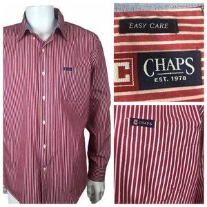 Chaps Easy Care Men's Size LARGE Red Stripe Button-Down Shirt – Classic Business Casual – EUC
