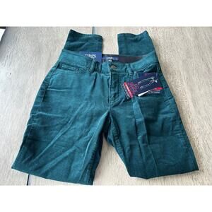These corduroy pants are perfect for adding style to your wardrobe. They come in a gorgeous jewel-toned emerald green. They feature a slimming fit style and technology so they flatter your figure. They are a mid-rise cut and have a hidden elastic waist. Classic zipper and button closure. new with tags.