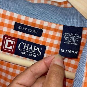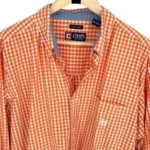 Chaps Est. 1978 Mens Easy Care Plaid Long Sleeve Button Down Shirt Orange Sz XL
