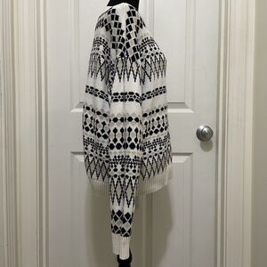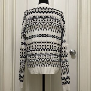 Chic and cozy, this Chaps womens XL sweater features a bold black and white Fair Isle knit with an eye-catching geometric pattern. The classic crewneck and relaxed fit make it a versatile cold-weather staple, perfect for wearing with jeans, leggings, or winter boots. This sweater has a trendy Nordic-inspired print in a soft, midweight knit and a timeless black and white colorway. Perfect for cabin core, winter layering, or minimalist wardrobe styling.