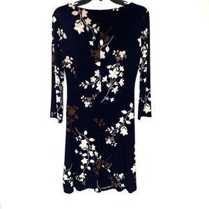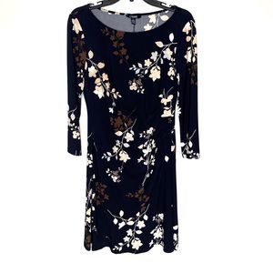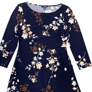 Chaps Floral Ruched 3/4 Sleeves Sheath Dress Size M