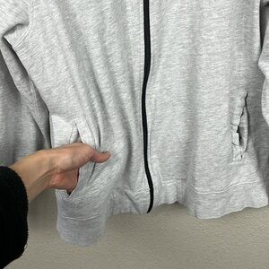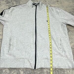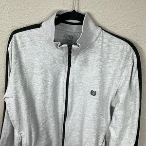 Chaps Full Zip Sweatshirt Sweater Gray Contrast Sleeve Stripe Sz L