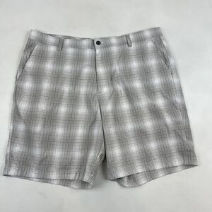 Chaps Golf 78 White Gray Plaid Performance Shorts Sz 42 Flat Front Stretch