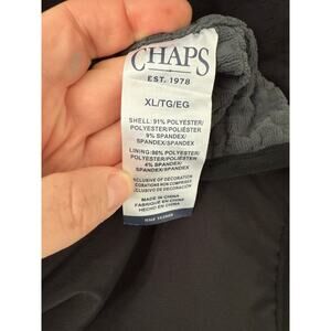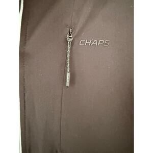 Chaps Golf black zip-up vest, size XL. Lightweight, easy layer with logo at chest and contrast piping at back.
