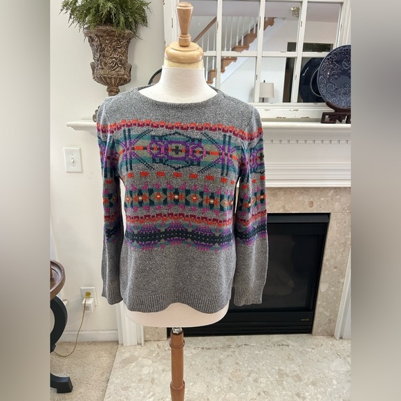Chaps Gray Sweater with Multicolor Aztec Pattern