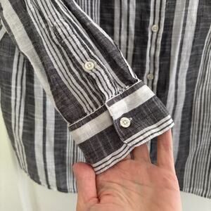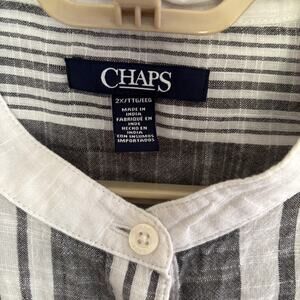 Chaps Gray white striped button shirt 2X mandarin collar lightweight 100% cotton