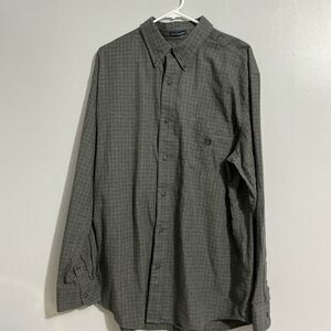 Chaps Gray and black cotton herringbone Long Sleeved Button Up Shirt size XL