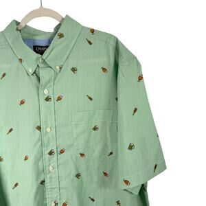 Chaps Green Beer Short Sleeve Button Down Shirt Stretch Woven Mens 2XLT Tall Very good Pre-Owned Condition (see pictures for condition) Features: • Style Profile: party, summer, vacation • Flaws: No Holes, stains, or tears • Measurements: Pit-to-Pit (measured armpit to armpit not stretched): 27" across Length (measured shoulder to bottom hem): 36" • Washing Instructions: machine wash cold Size: US Mens Size 2XLT