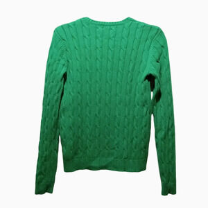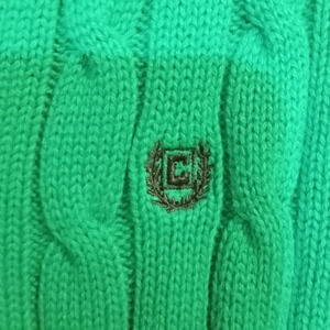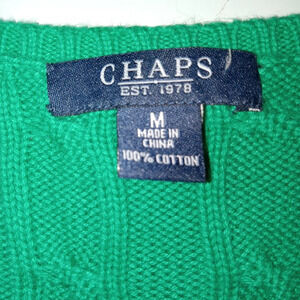 Chaps Green Cable Knit Ribbed V-Neck Sweater w/ Crest Logo Embroidered Medium