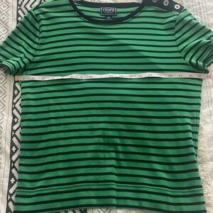 Chaps Green and blue Striped Tee with Shoulder Buttons