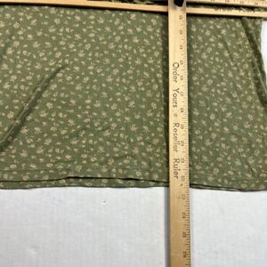 Chaps Henley Ruffle Shirt Green Floral Boho Cottagecore Casual Preppy Top L FLAW