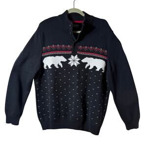 Chaps Henley Sweater Blue Knit Winter Polar Bear Holiday Mens L Fair Isle Class