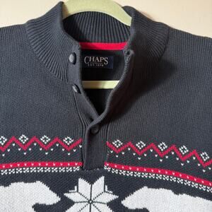 Chaps Henley Sweater Blue Knit Winter Polar Bear Holiday Mens L Fair Isle