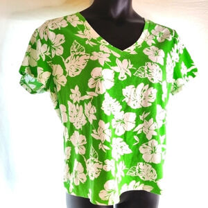 Chaps island fun v neck t shirt with short sleeves in stretchy cotton material with vibrant green and white pattern. So fun and summery. Excellent used condition.