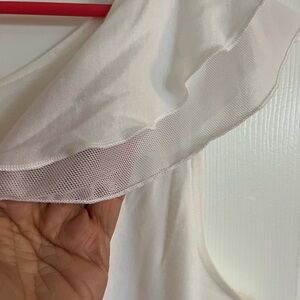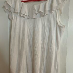 Elegant ivory blouse with a stylish ruffle neckline. Ideal for any occasion.
