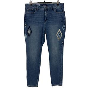 Chaps Jeans Womens 14 Blue Embroidered Slim Leg Stretch Actual 35X29 NWT