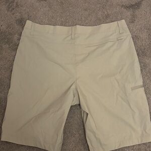 Regular fit size 36 shorts. About knee or mid thigh length depending on height