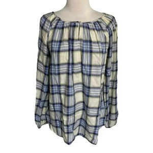 Chaps L blue plaid long sleeve smock flannel top