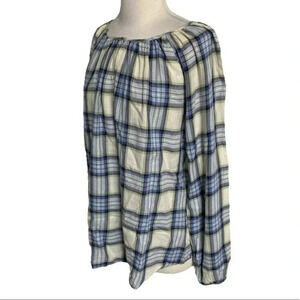 Chaps L blue plaid long sleeve‎ smock flannel top