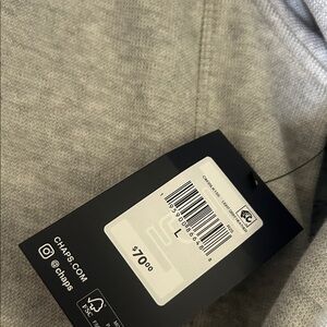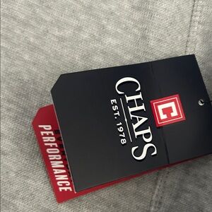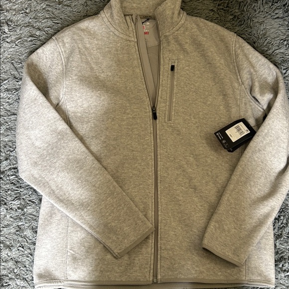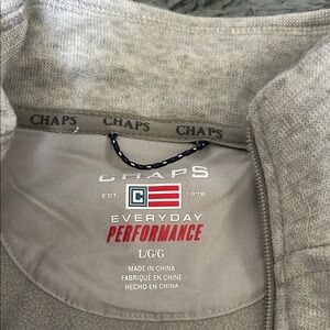 Light gray jacket with zip-up front. Features Chaps branding inside collar.