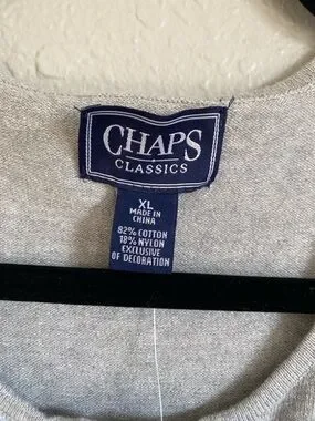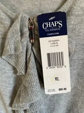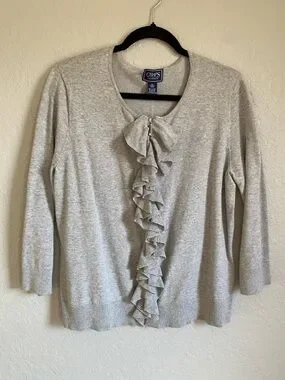 Chaps Light Gray Ruffle-Front Sweater