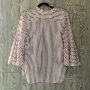Chaps Linen Blend Bell Sleeve Red and White Pin Stripe Button Down Blouse M