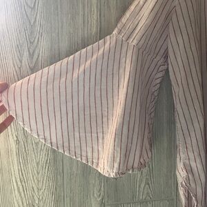 Chaps White & Red Stripe Bell Sleeve Button Down Linen Blend Top Very good condition Womens size Medium