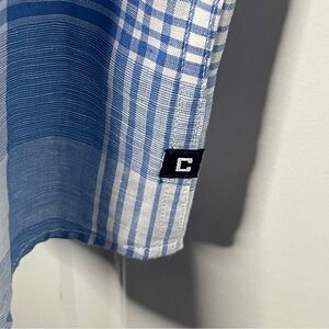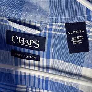 Chaps Linen Blend Blue White Plaid Size XL Men's Short Sleeve Button Up Shirt