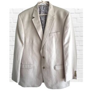 Chaps Linen Blend Cream Sport Coat Blazer Notched Lapel Modern Cut Mens 46L Tall