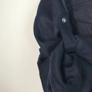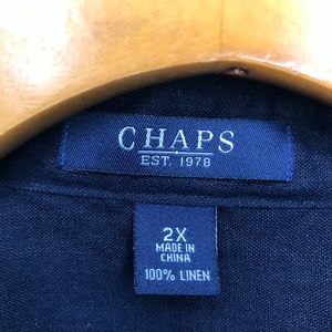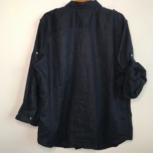 Chaps Linen Shirt Blue Button Long Roll Tab Sleeves Womens 2X