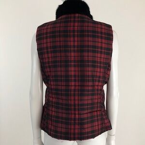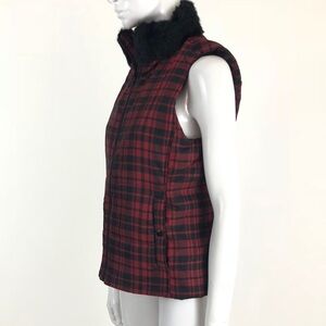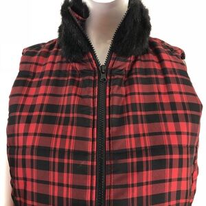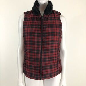 Chaps M Plaid Faux Fur Collar Puffer Vest