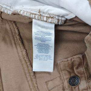-Features: Soft corduroy fabric in a light brown shade, stretch, 5-pocket, zipper fly with top branded button, straight leg, mid-rise