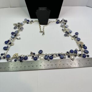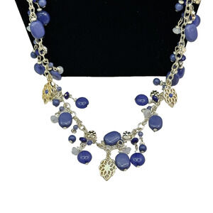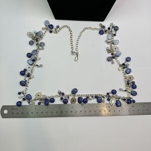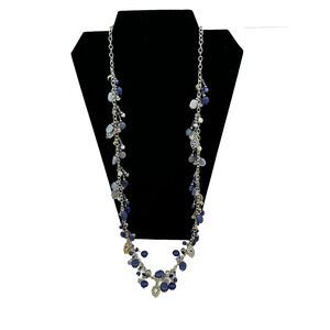 Chaps Marked Statement Necklace Silver Chain with Faux Blues Stones 30" Boho