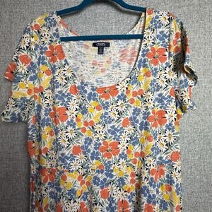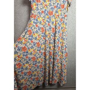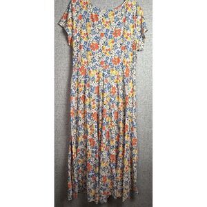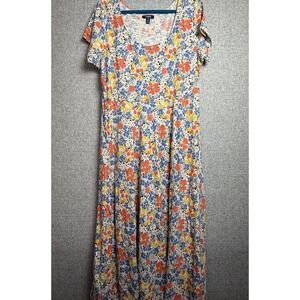 Chaps Maxi Dress Plus 1X Orange Yellow Blue Floral 100% Cotton Boho Hippie