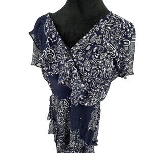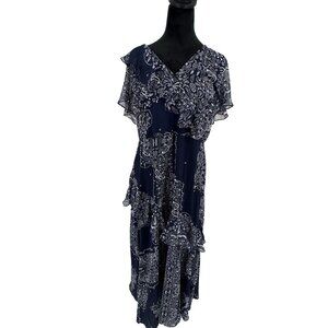 Chaps Maxi Dress Womens Size 12 Navy Paisley Ruffle Empire Waist Layered Flowy