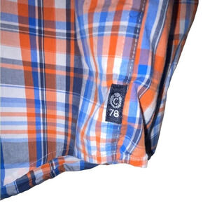 Chaps Medium Men’s Plaid Button Shirt Cotton White Blue Orange Ralph Lauren