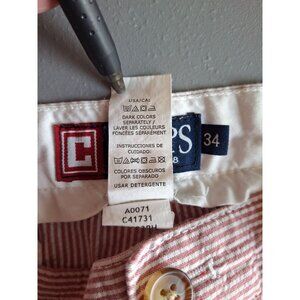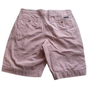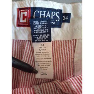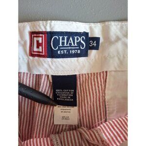 Chaps Men Seersucker Shorts 34 Red White Striped Flat Front Preppy Beach Resort