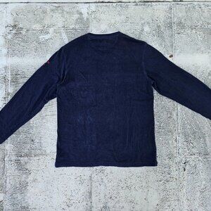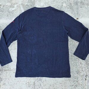 Chaps Men Sweat Shirt Long Sleeve V Neck T Shirt Navy Blue Cotton Top Size M