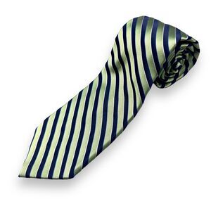 Chaps Mens 100% Silk Dress Tie Hand Made Awning Stripe Pattern 59" 3 3/4"