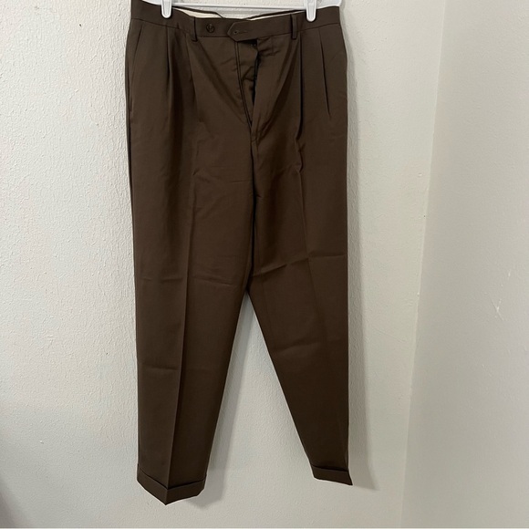 Chaps Men’s 100% Wool Brown Pleated Dress Pants - Size 34x32 Cuff Hems EUC
