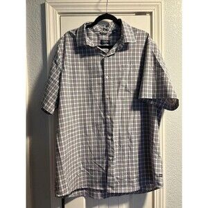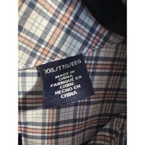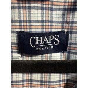 Chaps Mens 2XL Shirt Blue Salmon Plaid Check Short Sleeve Button-Down Easy Care