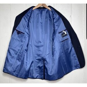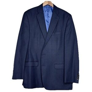Chaps Men's 44L Two Button Blue Blazer Glen Check Plaid Sport Coat Preppy Office