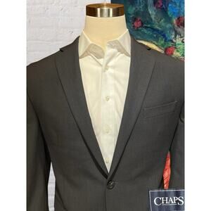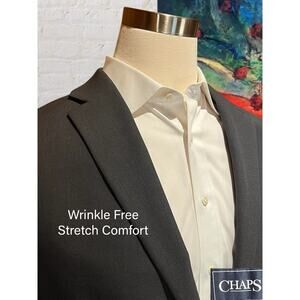Chaps Mens 44R 36x30 Solid Charcoal Gray Suit Wrinkle Resistant Comfort Stretch